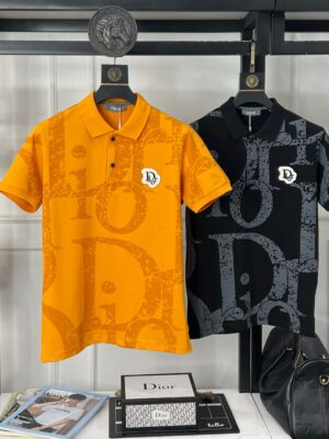DIOR COLLAR T-SHIRTS DIOR SELF PATTERN A/O PRINT + DIOR LOGO HIGH QUALITY METALLIC PATCH COLLAR T-SHIRTS WITH HALF SLEEVES COTTON LYCRA FABRIC SIZES:- M…